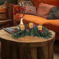 I1036 Рождественская подставка для свечей с искусственными ягодами сосновые иглы 3-х отверстия подсвечник украшение